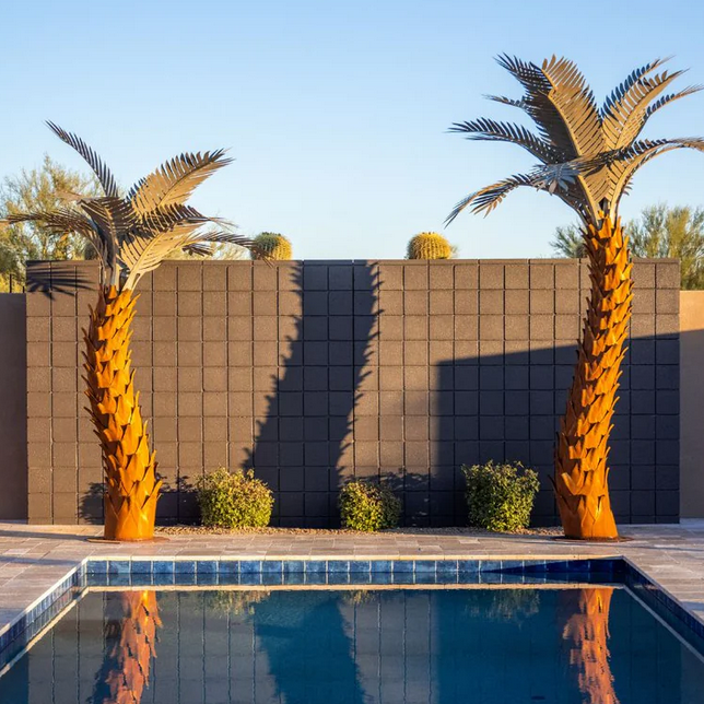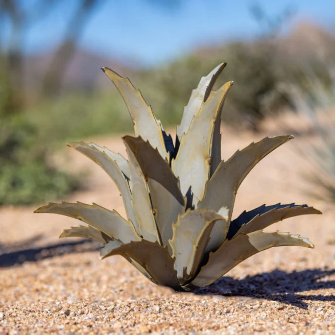 HTP’s steel desert plants come in a variety of styles and sizes to choose from. No matter which style of steel plant you choose, they are all are an excellent option for dressing up a property’s curb appeal and/or backyard landscape. Most of our steel plants are available in small, medium and large sizes (with a few exceptions), and can be placed anywhere living plants or cactai grow. We offer both in stock purchases and custom orders on a variety of sought after plant styles from Agave’s to Palm trees. Each plant style is welded and carefully crafted to look just like the real thing.